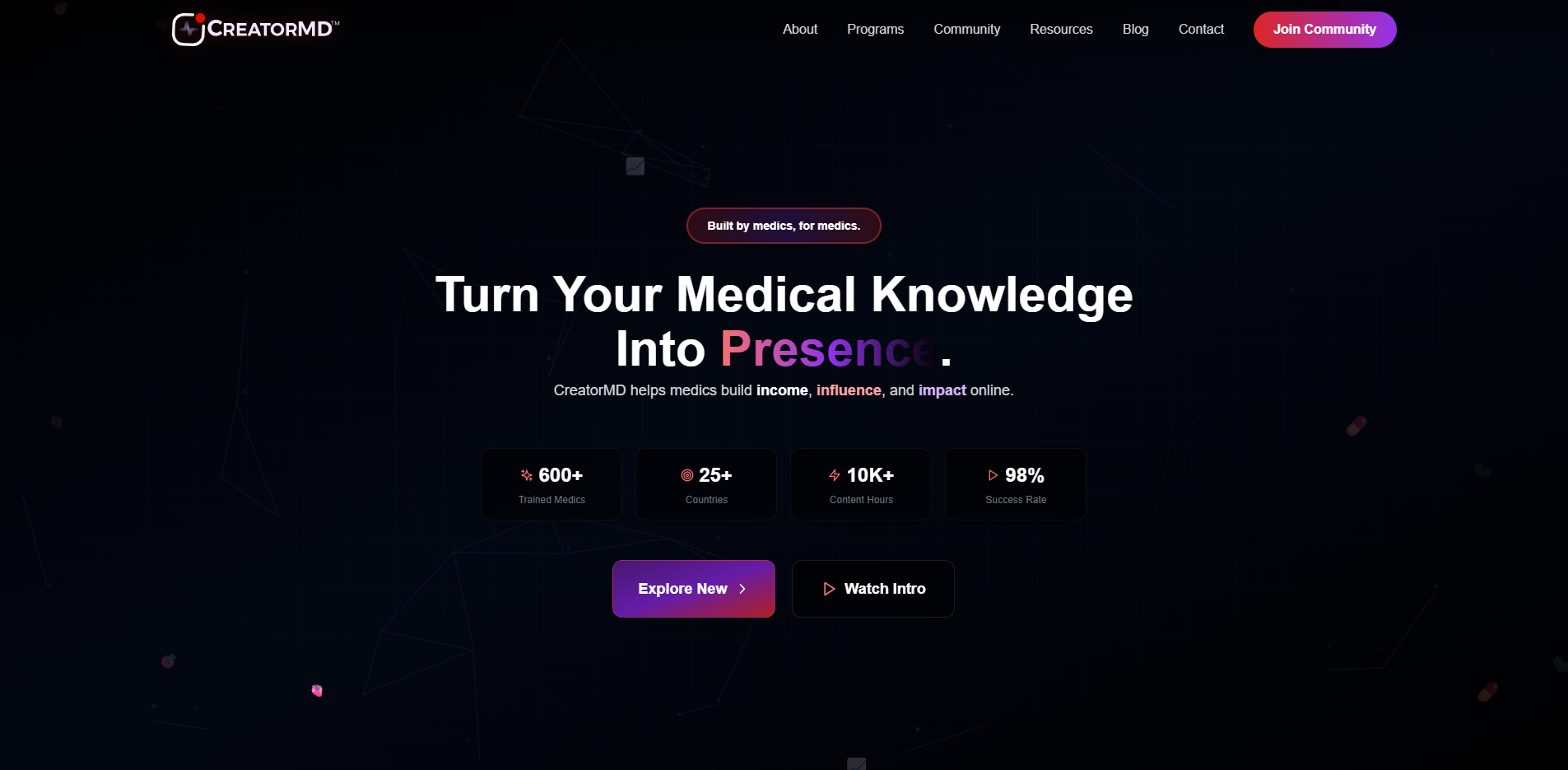 A full website built for CreatorMD, a medical content acceleration system designed to help healthcare professionals produce and distribute content faster. Clean, conversion-focused, and built for scale.